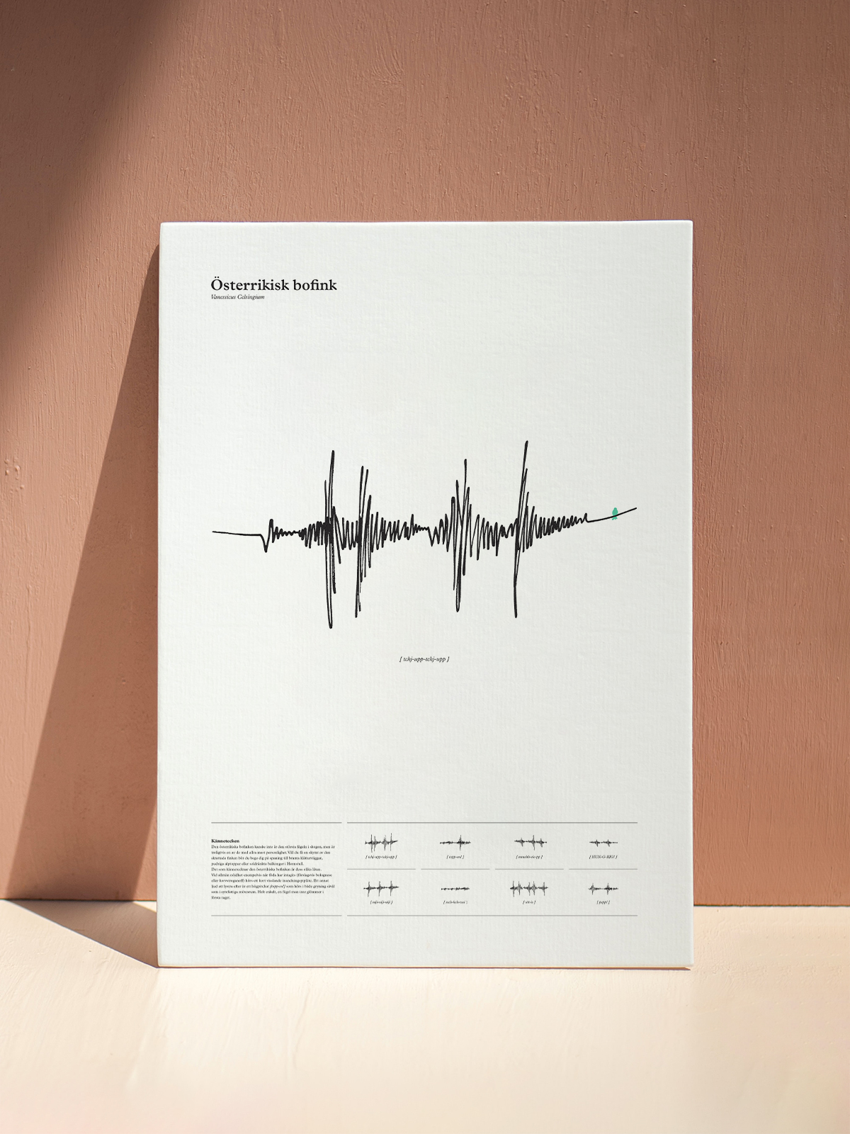 I created this bird sound print for Vanessa. The idea is based on her habit to whistle around the office and her ability to sound like a bird. So I decided to create the print based on soundwaves.